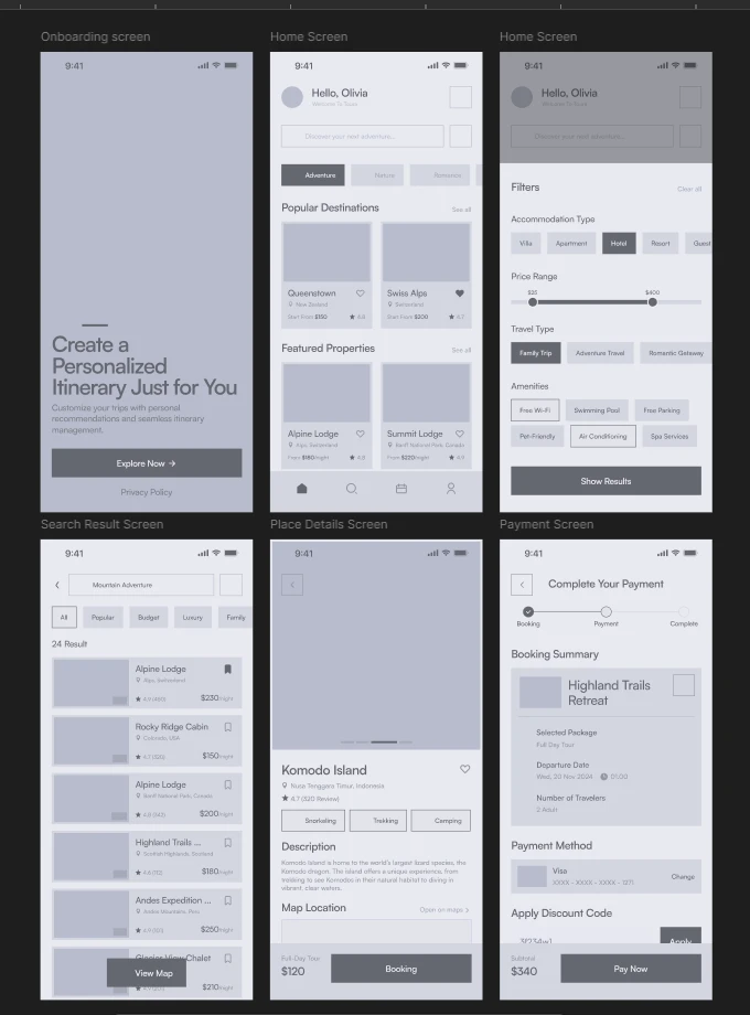 A review of current travel apps revealed areas for improvement, especially in terms of personalization and simplicity in navigation. Notably, I identified that existing apps often lacked flexibility in filtering options, something that Toura could capitalize on by offering advanced, yet easy-to-use, filter settings.